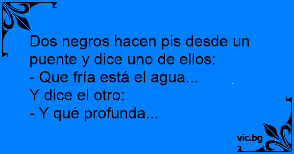 Dos negros hacen pis desde un puente y dice uno de ellos: