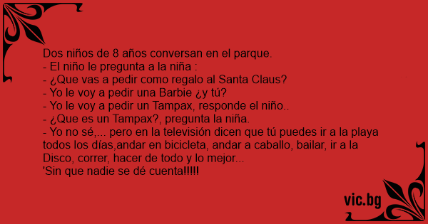 - Yo le voy a pedir un Tampax, responde el niño..