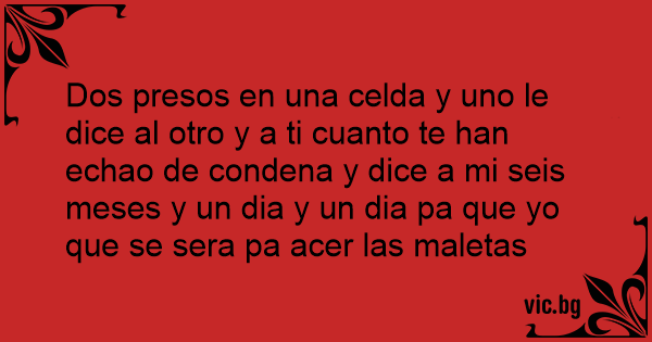 Dos presos en una celda y uno le dice al otro y a ti cuanto te han echao de condena y dice a mi seis meses y un dia y un dia pa que yo que se sera pa acer las maletas