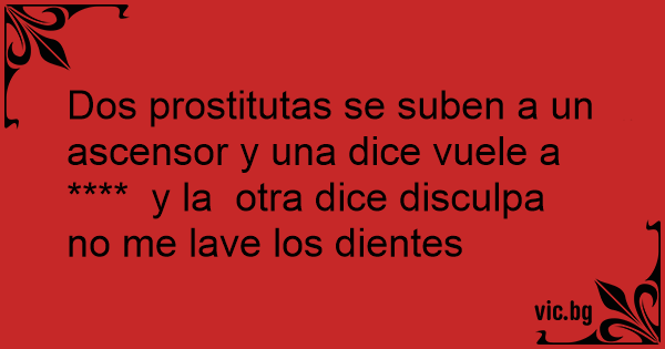 Dos prostitutas se suben a un ascensor y una dice vuele a **** y la otra dice disculpa no me lave los dientes