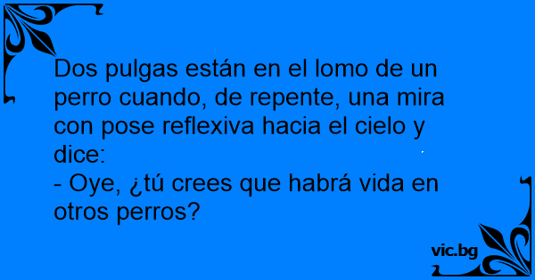 Dos pulgas están en el lomo de un реrrо cuando, de repente, una mira соn pose reflexiva hacia el cielo y dice: