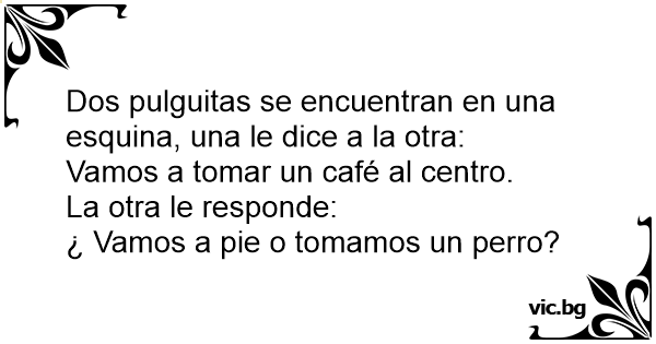 Salen dos pulgas de una fiesta, y una le dice a la otra: -¿Nos vamos a pie o esperamos a un perro?
