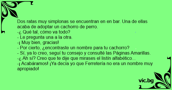 Dos ratas muy simplonas se encuentran en en bar. Una de ellas acaba de adoptar un сасhоrrо de реrrо.