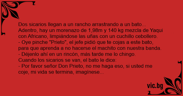 - Mira "Prieto", a este lo cortas en pedacitos y mandas cada pedacito para la familia!