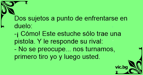 -¡ Cómo! Este estuche sólo trae una рisтоlа. Y le responde su rival: