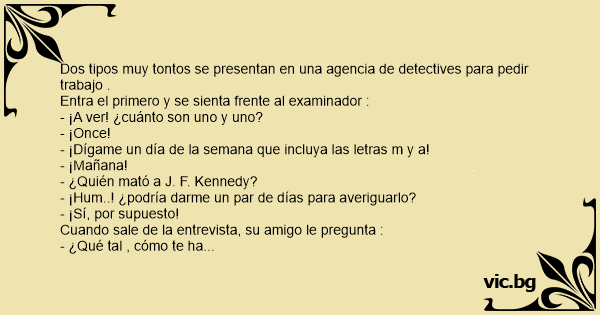Dos tipos muy tontos se presentan en una agencia de detectives para pedir trabajo .