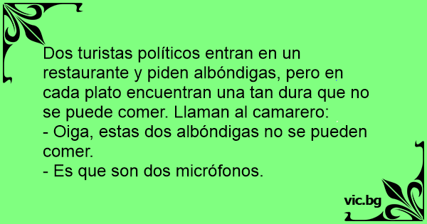 Dos turistas políticos entran en un restaurante y piden albóndigas, pero en cada plato encuentran una tan dura que no se puede comer. Llaman al camarero: