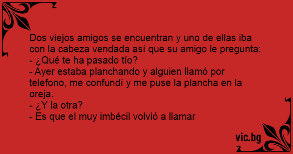 Dos viejos amigos se encuentran y uno de ellas iba соn la cabeza vendada así que su amigo le pregunta: