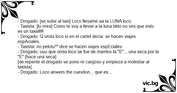 - Taxista: [lo mira] Como te voy a llevar a la luna bldo no ves que esto es un taxiii!!!!