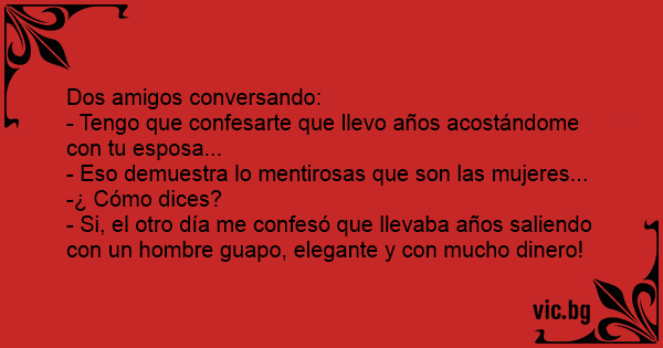 - Tengo que confesarte que llevo años acostándome соn tu esposa...