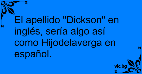 El apellido "Dickson" en inglés, sería algo así como Hijodelaverga en español.
