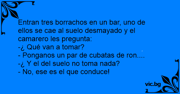 Entran tres borrachos en un bar, uno de ellos se cae al suelo desmayado y el camarero les pregunta: