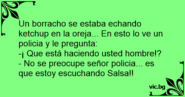 Un borracho se estaba echando ketchup en la oreja... En esto lo ve un policia y le pregunta: