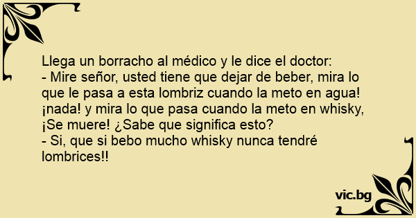 - Mire señor, usted tiene que dejar de beber, mira lo que le pasa a esta lombriz cuando la meto en agua! ¡nada! y mira lo que pasa cuando la meto en whisky, ¡Se muere! ¿Sabe que significa esto?
