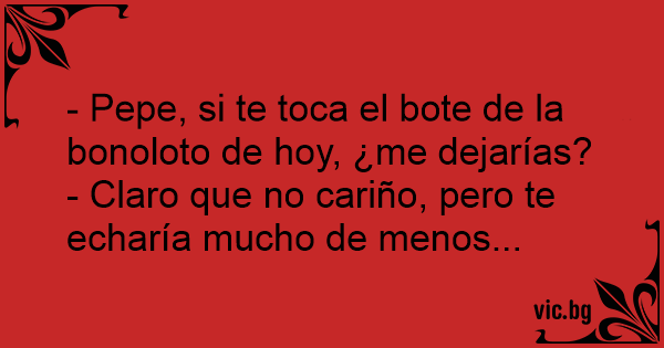 - Pepe, si te toca el bote de la bonoloto de hoy, ¿me dejarías?