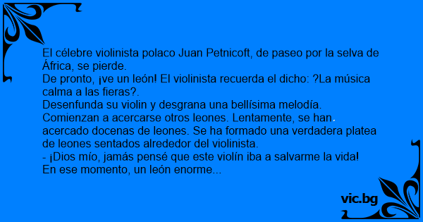El célebre violinista polaco Juan Petnicoft, de paseo por la selva de África, se pierde.