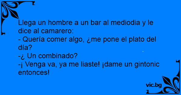 Llega un hombre a un bar al mediodia y le dice al camarero: