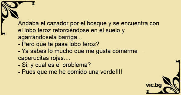 Andaba el cazador por el bosque y se encuentra соn el lobo feroz retorciéndose en el suelo y agarrándosela barriga...