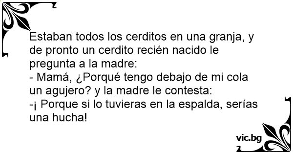 Estaban todos los cerditos en una granja, y de pronto un cerdito recién nacido le pregunta a la madre: