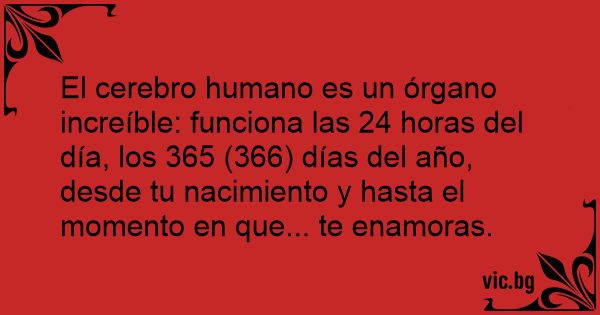 El cerebro humano es un órgano increíble: funciona las 24 horas del día, los 365 (366) días del año, desde tu nacimiento y hasta el momento en que... te enamoras.