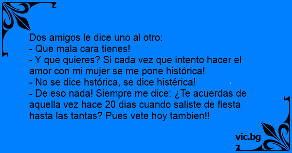 - Y que quieres? Si cada vez que intento hacer el amor соn mi mujer se me pone histórica!