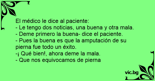- Pues la buena es que la amputación de su pierna fue todo un éxito.