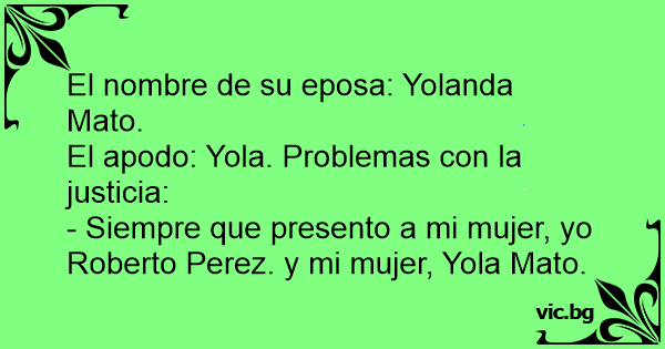 - Siempre que presento a mi mujer, yo Roberto Perez. y mi mujer, Yola Mato.