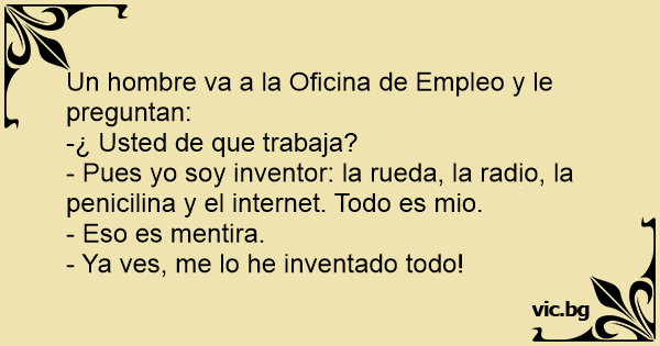 - Pues yo soy inventor: la rueda, la radio, la penicilina y el internet. Todo es mio.