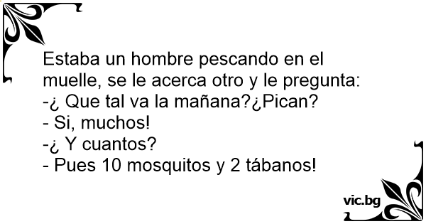 Estaba un hombre pescando en el muelle, se le acerca otro y le pregunta: