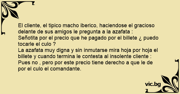 El cliente, el tipico macho iberico, haciendose el gracioso delante de sus amigos le pregunta a la azafata :