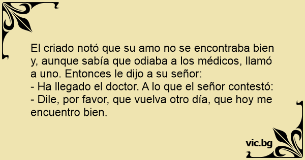El criado notó que su amo no se encontraba bien y, aunque sabía que odiaba a los médicos, llamó a uno. Entonces le dijo a su señor: