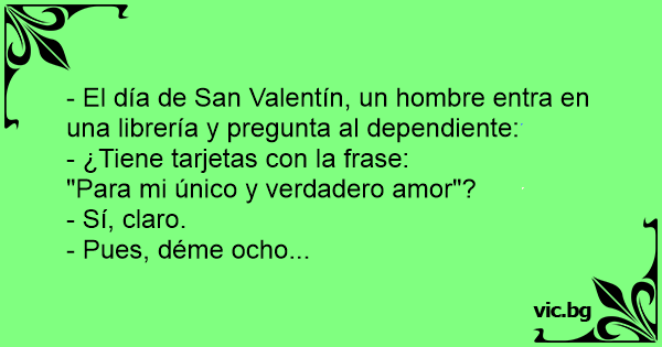 - El día de San Valentín, un hombre entra en una librería y pregunta al dependiente: