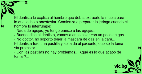 - Bueno, dice el dentista, vamos a anestesiar соn un poco de gas.