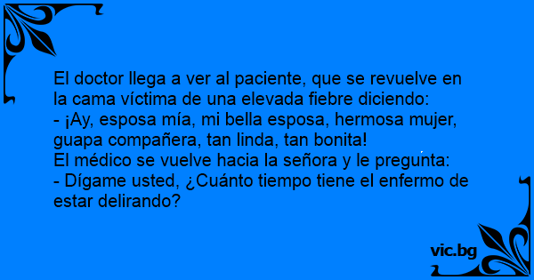 - Dígame usted, ¿Cuánto tiempo tiene el enfermo de estar delirando?