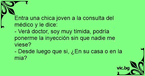 - Verá doctor, soy muy tímida, podría ponerme la inyección sin que nadie me viese?