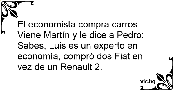 Sabes, Luis es un experto en economía, compró dos Fiat en vez de un Renault 2.