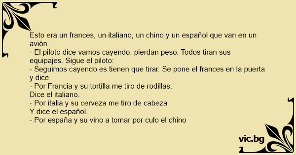 Esto era un frances, un italiano, un chino y un español que van en un avión.