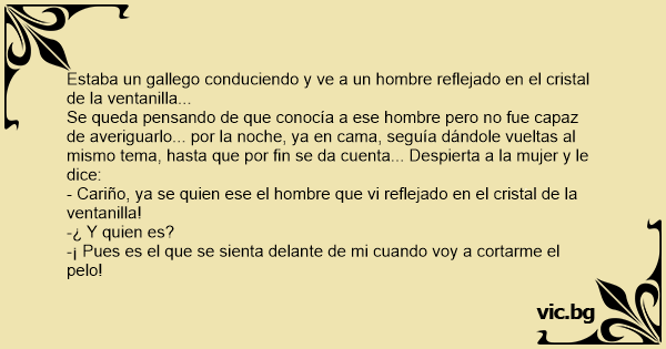 Estaba un gallego conduciendo y ve a un hombre reflejado en el cristal de la ventanilla...