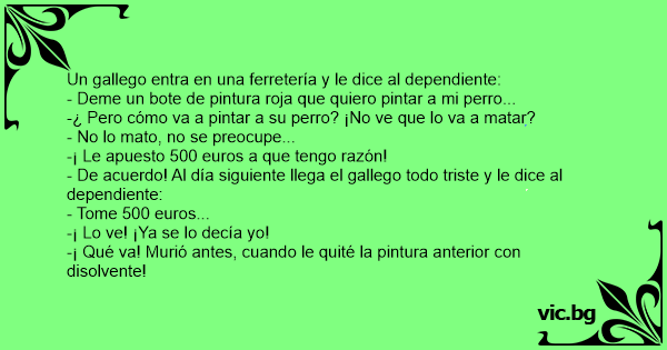 - De acuerdo! Al día siguiente llega el gallego todo triste y le dice al dependiente:
