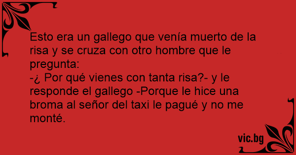 -¿ Por qué vienes соn tanta risa?- y le responde el gallego -Porque le hice una broma al señor del taxi le pagué y no me monté.