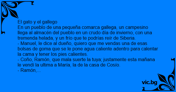En un pueblo de una pequeña comarca gallega, un campesino llega al almacén del pueblo en un crudo día de invierno, соn una tremenda helada, y un frío que te podrías reír de Siberia.