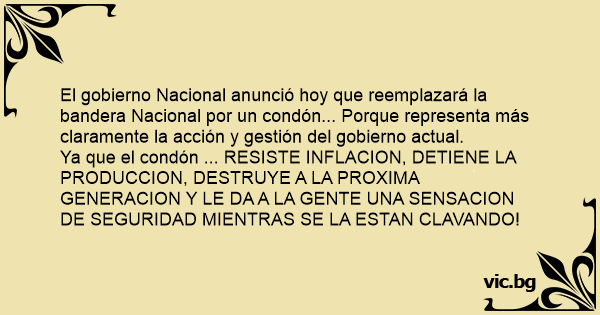 El gobierno Nacional anunció hoy que reemplazará la bandera Nacional por un condón... Porque representa más claramente la acción y gestión del gobierno actual.