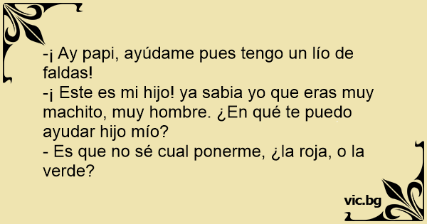 -¡ Ay papi, ayúdame pues tengo un lío de faldas!