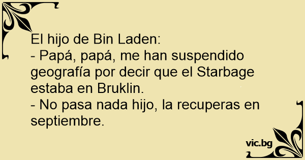 - Papá, papá, me han suspendido geografía por decir que el Starbage estaba en Bruklin.