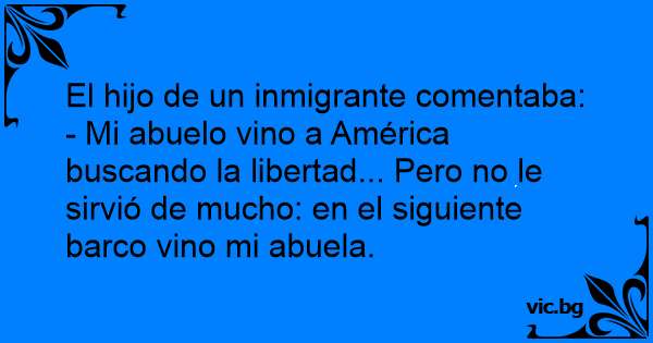 - Mi abuelo vino a América buscando la libertad... Pero no le sirvió de mucho: en el siguiente barco vino mi abuela.
