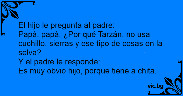 Papá, papá, ¿Por qué Tarzán, no usa cuchillo, sierras y ese tipo de cosas en la selva?