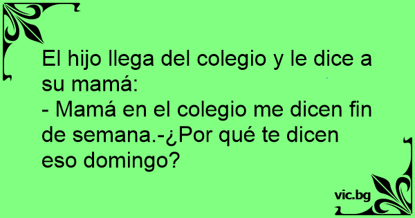 - Mamá en el colegio me dicen fin de semana.-¿Por qué te dicen eso domingo?