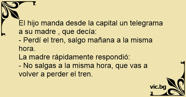 El hijo manda desde la capital un telegrama a su madre , que decía: