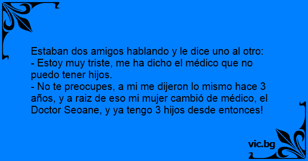 - No te preocupes, a mi me dijeron lo mismo hace 3 años, y a raiz de eso mi mujer cambió de médico, el Doctor Seoane, y ya tengo 3 hijos desde entonces!