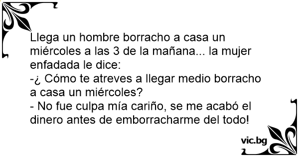 -¿ Cómo te atreves a llegar medio borracho a casa un miércoles?